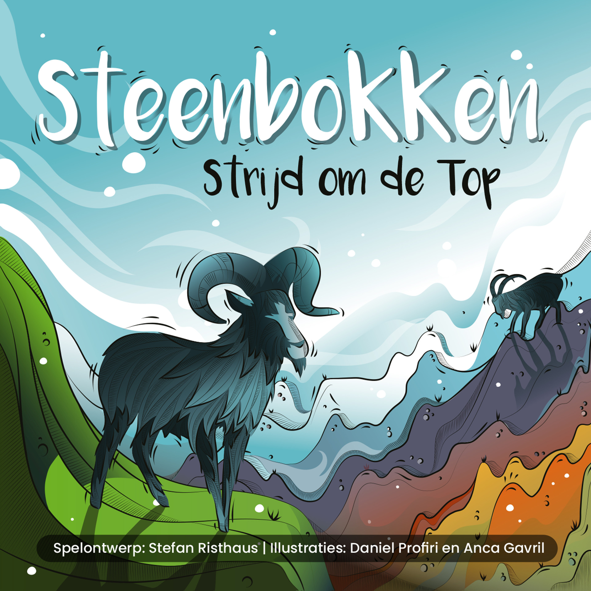 In Steenbokken gooi je met dobbelstenen, combineer je de resultaten strategisch en laat je je bokken naar de top van zes bergen klimmen. Bovenaan is er maar plek voor één geit per berg — dus als iemand jou verdringt, moet je weer helemaal opnieuw beginnen.